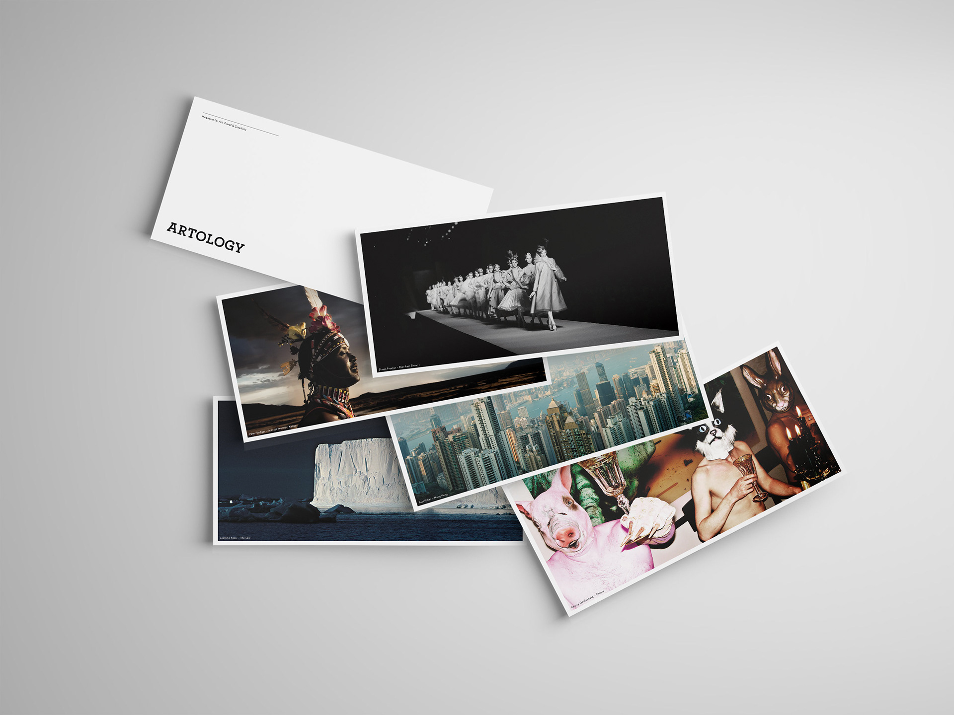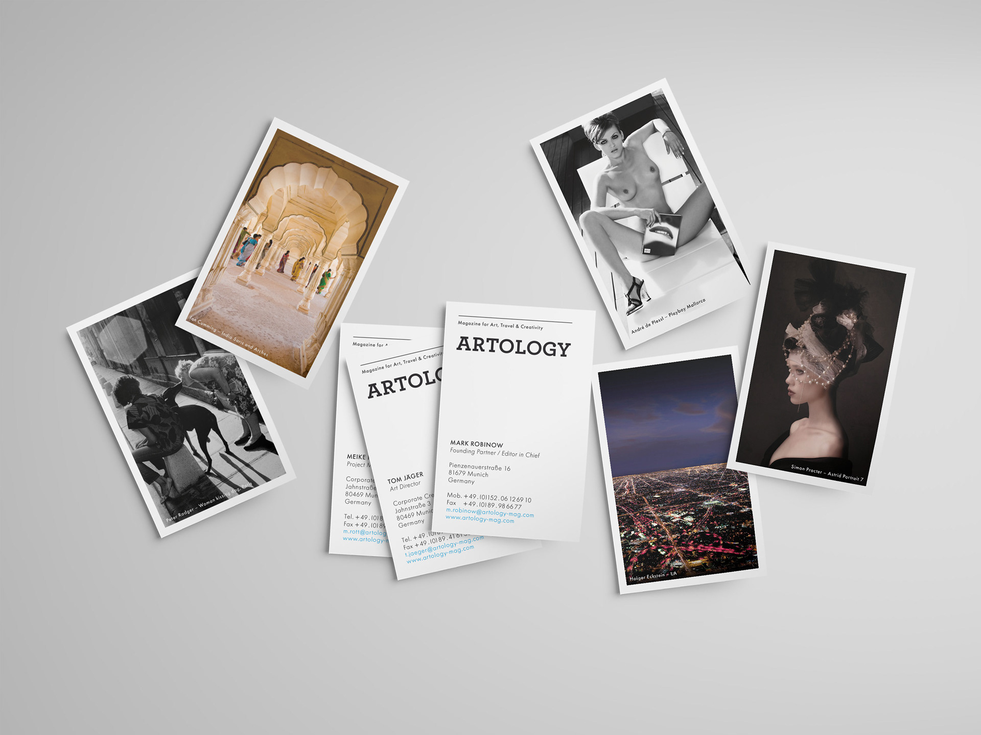 Die Geschäftsausstattung für Artology, spannt einen inhaltlichen Bogen zum Magazin indem sie Künstler und Themen von vergangenen Ausgaben aufgreift.