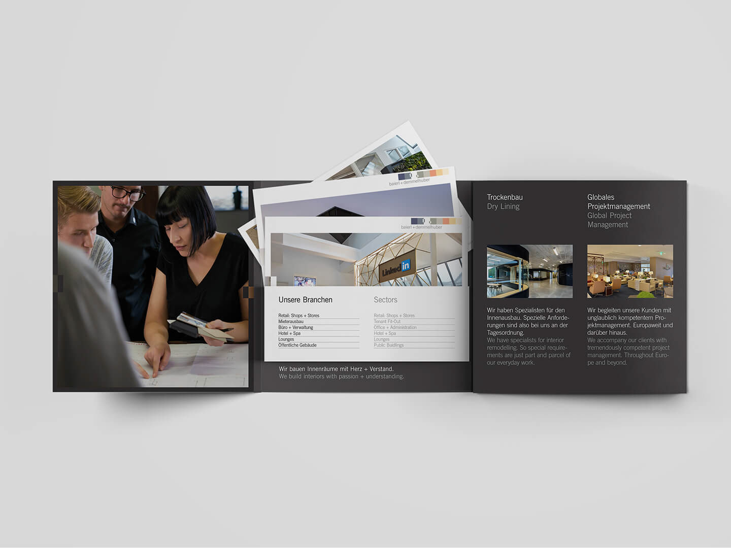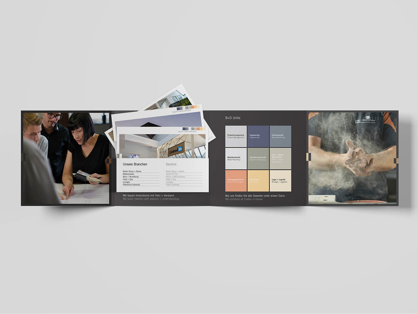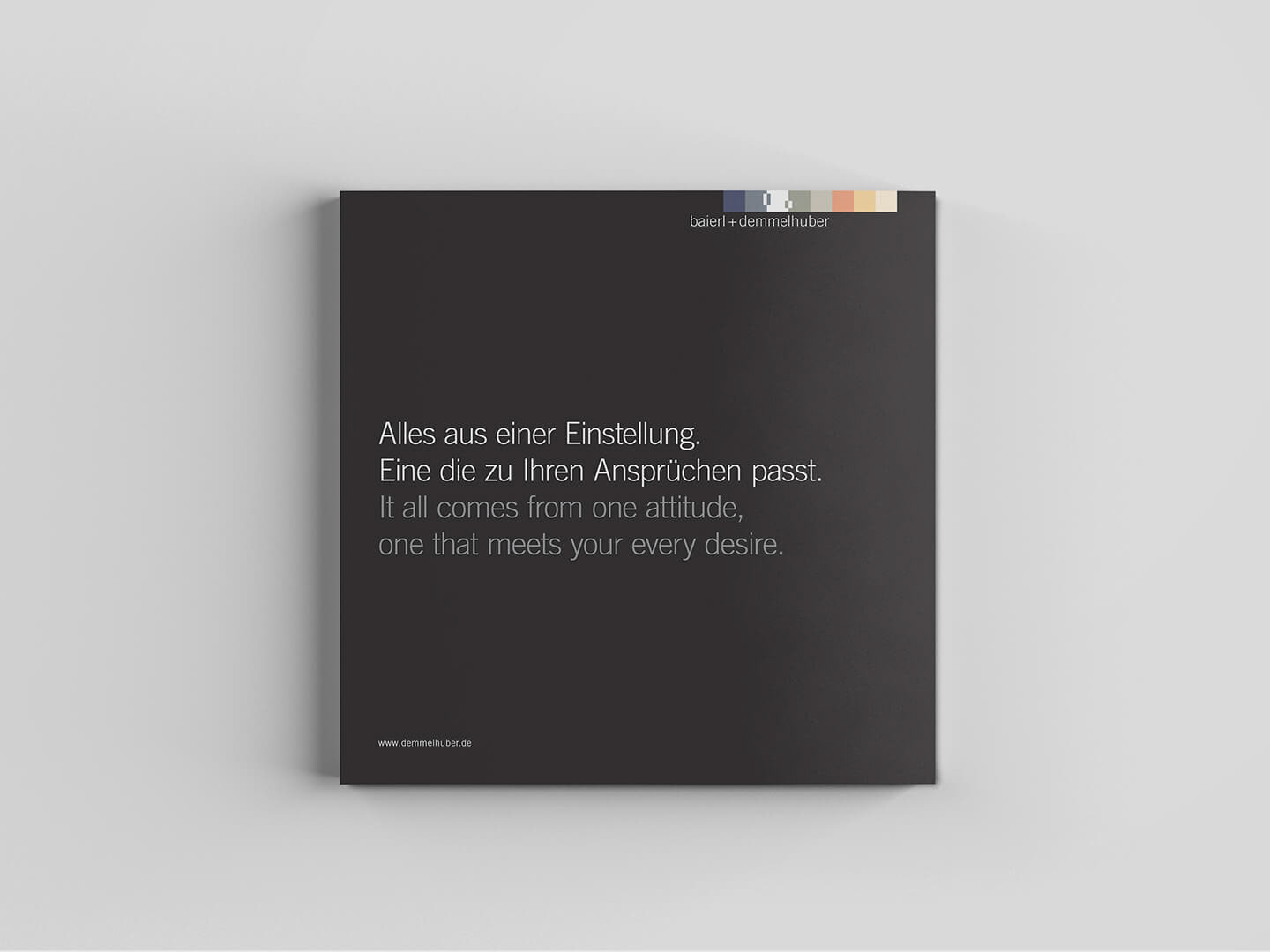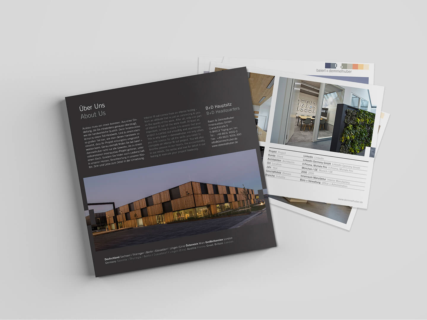 Der Image Folder für baierl + demmelhuber führt den Betrachter mit dem Öffnen jeder Klappe, tiefer durch die Welt der Innenraum-Manufaktur. Der integrierte Schuber bietet die Möglichkeit, die Mappe mit individuellen Projekt-Karten zu versehen.