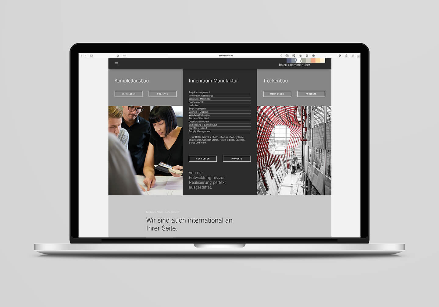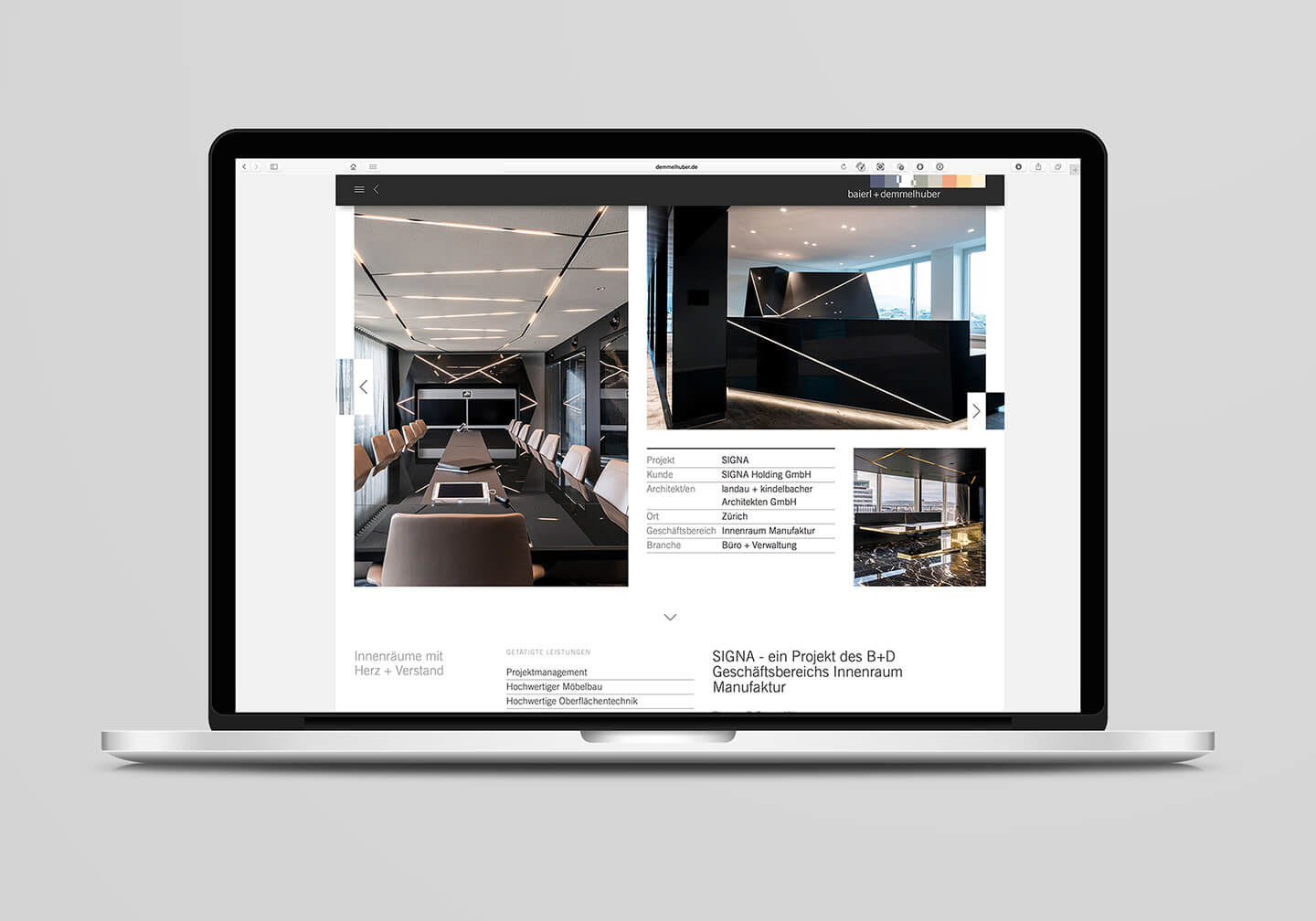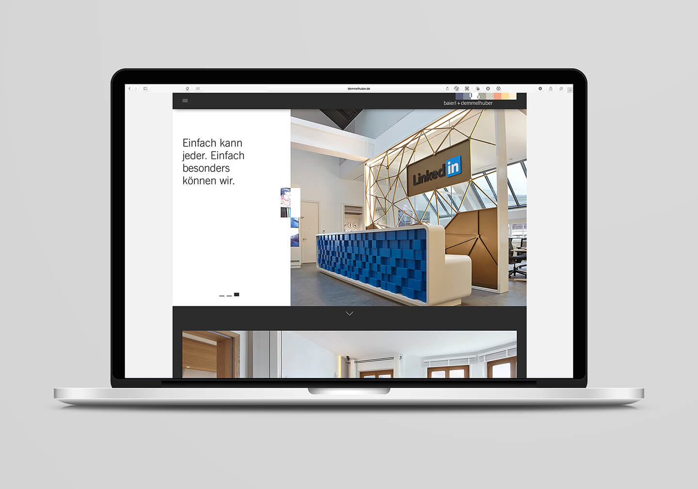 Die Website von baierl + demmelhuber übersetzt die strategische Orientierung der Marke in ein technisch anspruchsvolles Design. Die Website wurde mit dem »IF Design Award« ausgezeichnet.