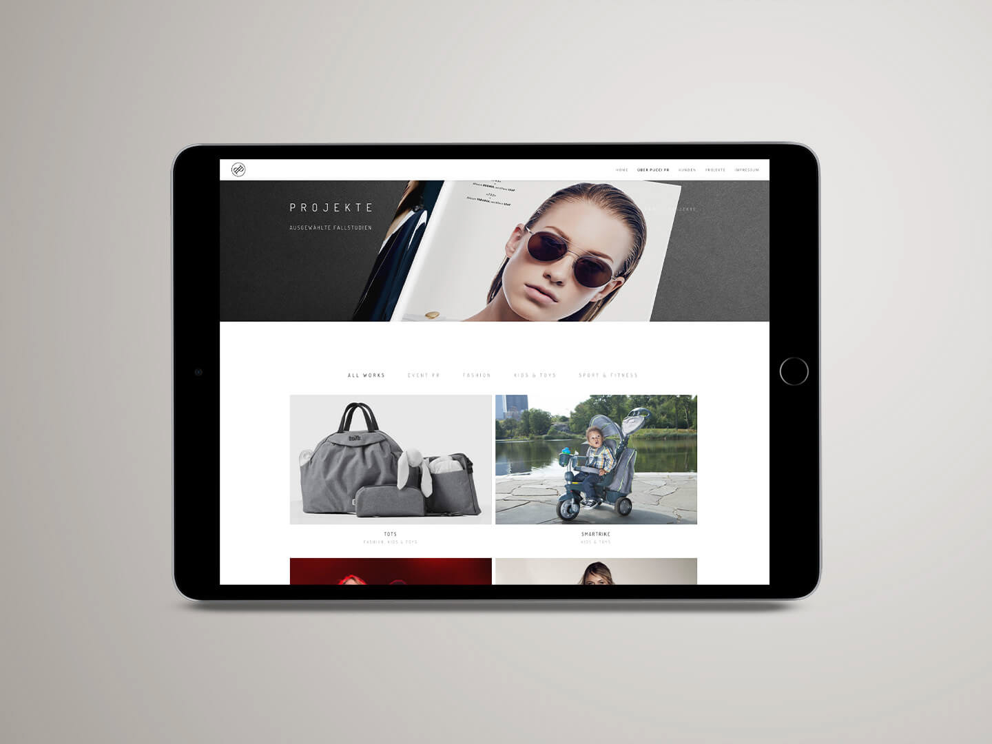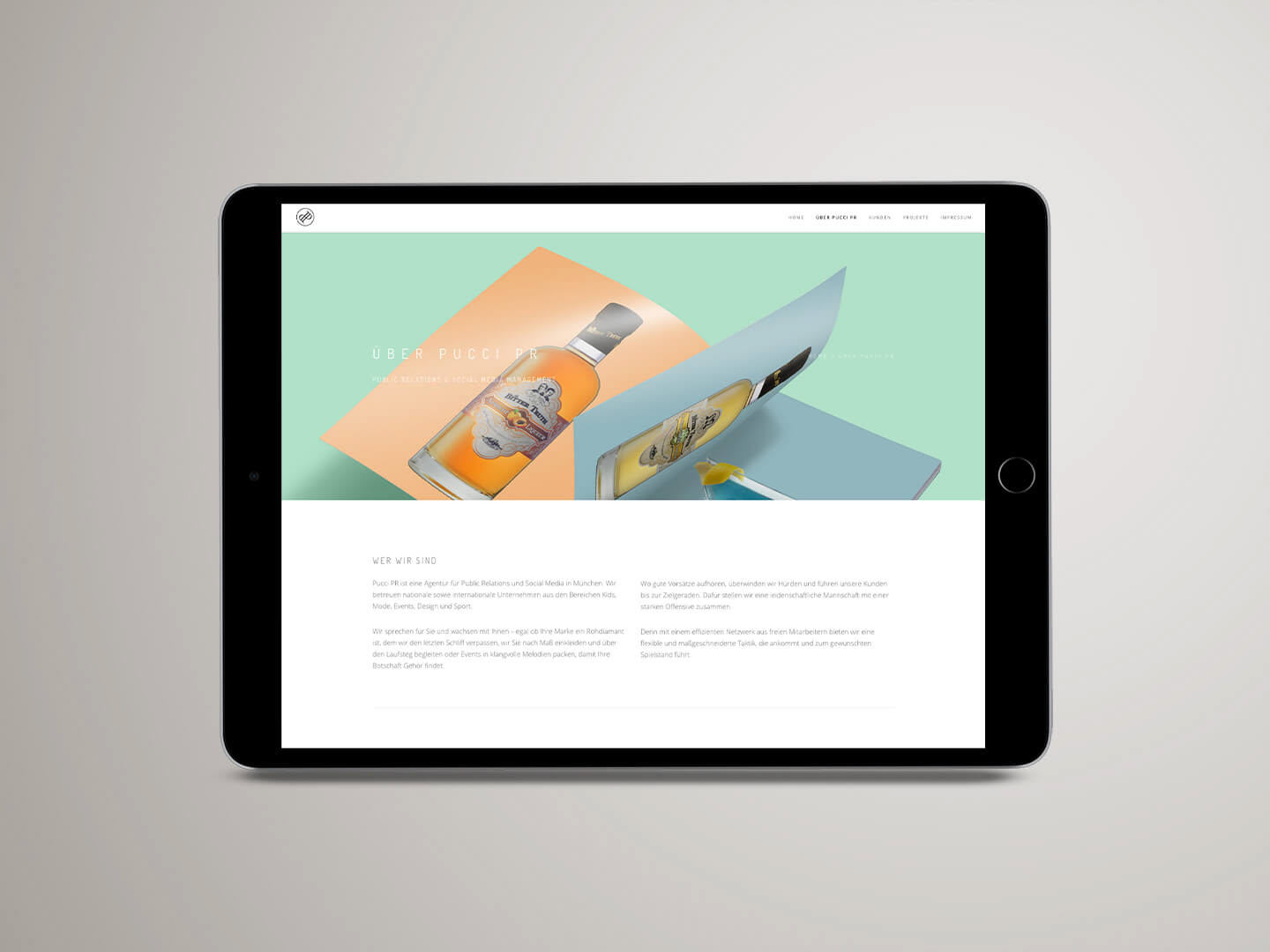 Pucci PR ist eine Agentur für Public Relations und Social Media Management aus München, mit Fokus auf dem Mode- und Lifestyle-Bereich. Die Website stellt neben den gewohnten Leistungen vor allem bisherige Projekte erlebbar in den Mittelpunkt.